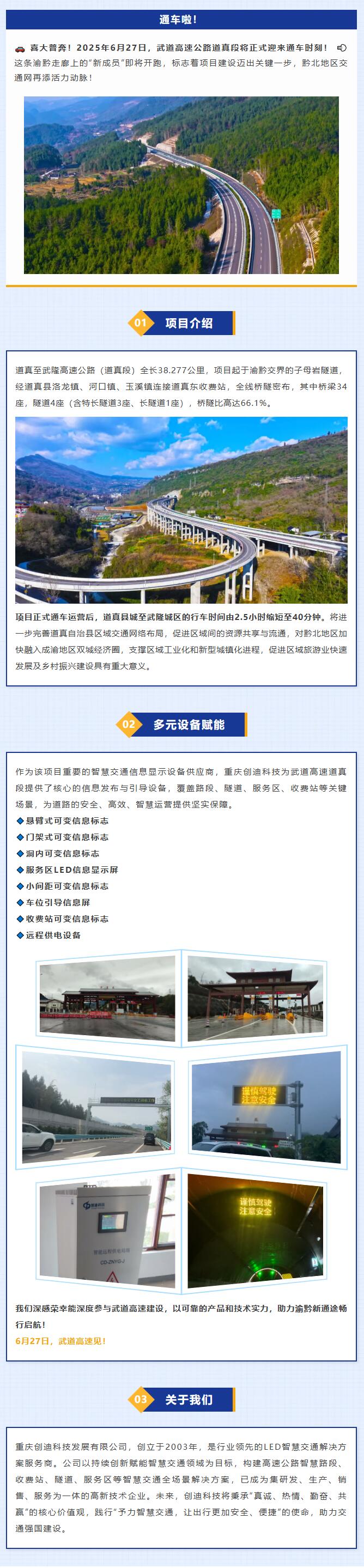 黔渝再提速!武道高速道真段6月27日通車運營!