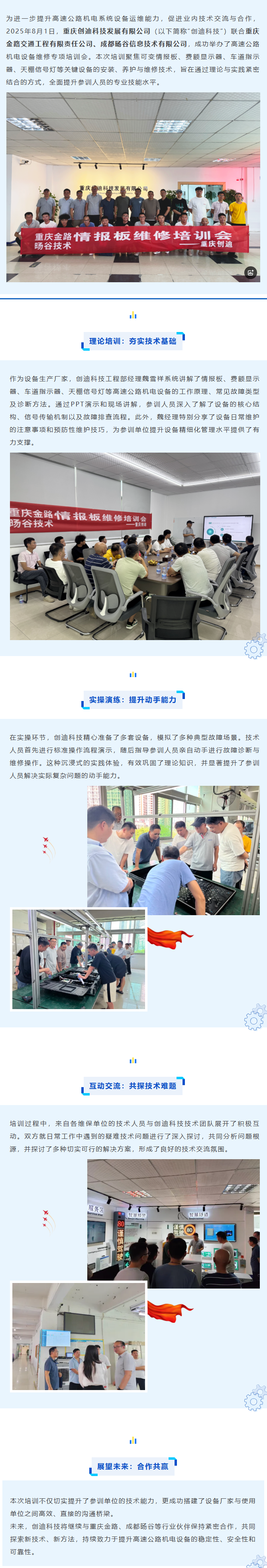 攜手共進(jìn),技術(shù)賦能丨重慶創(chuàng)迪科技與重慶金路、成都旸谷開展高速機(jī)電設(shè)備維修培訓(xùn)交流