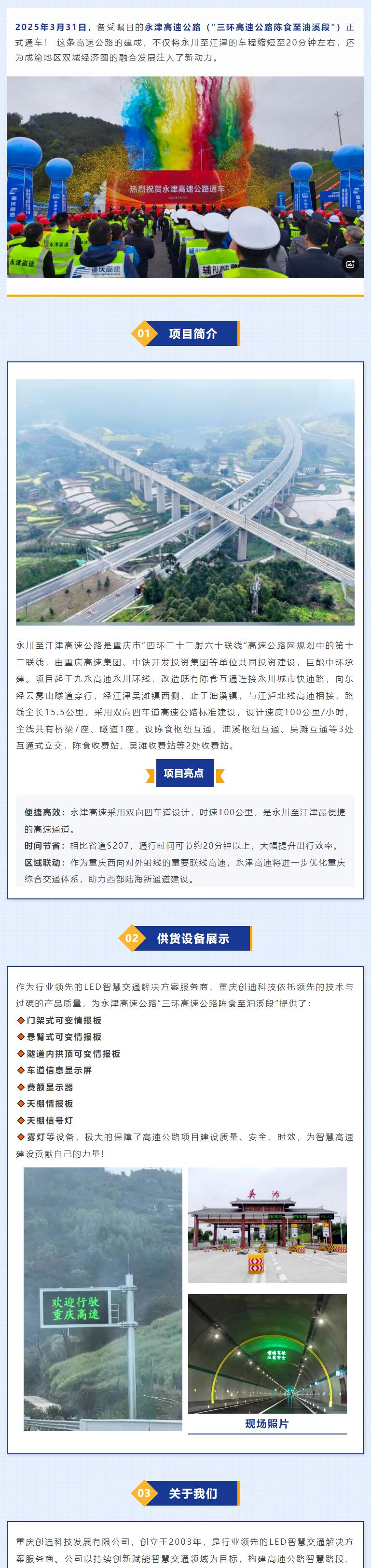 20分鐘直達(dá)!重慶創(chuàng)迪科技助力永津高速通車(chē)!